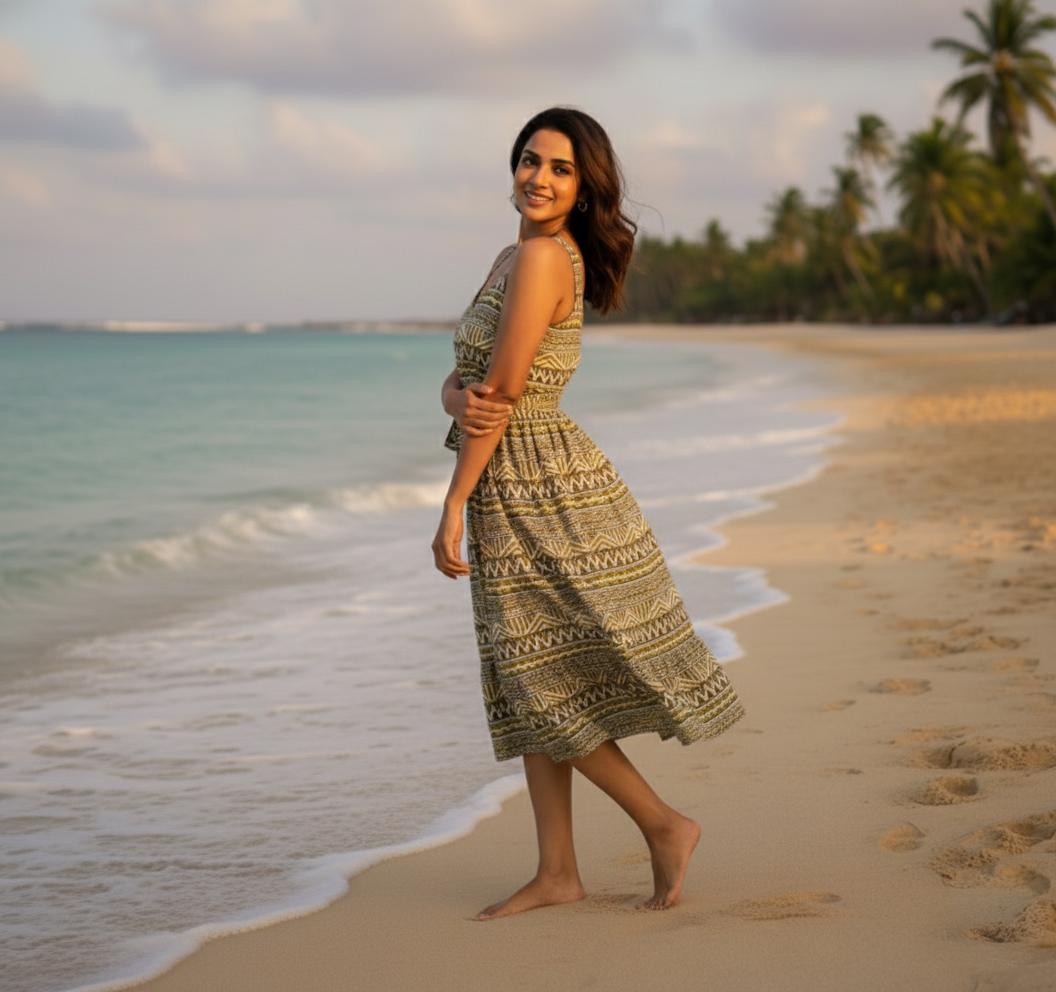 Be the first to review “Bohemian Olive Green & Khaki Summer Dress”